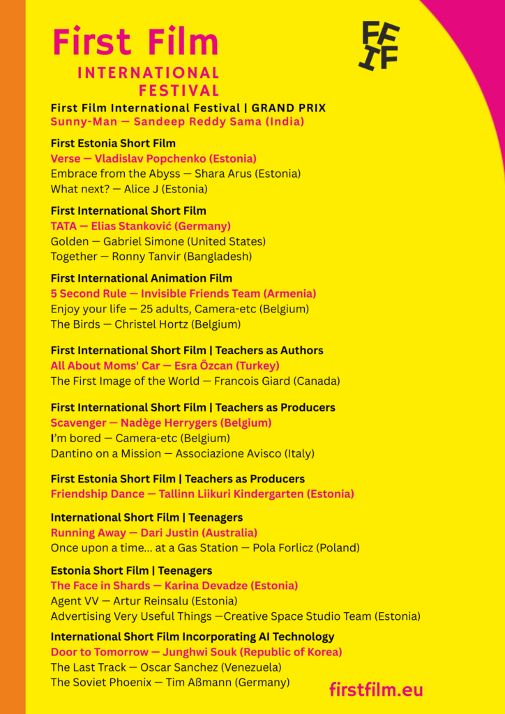 In an era of longevity, global shifts, and technological innovations, the international film festival «First Film» in Tallinn opens its doors to all those who aspire to express themselves through the world of cinema. In this new realm where audio-visual tools are becoming increasingly accessible, the festival invites individuals of varying ages and experiences to share their stories using the visual language of cinematography.